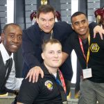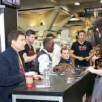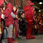 Antes de que los niños disfrazados saliesen al estrado, el director de Iron Man 3 Shane Black y el actor Don Cheadle (Rhodey / Máquina de Guerra), estuvieron firmando autógrafos a los asistentes frente a la sala de armaduras que Marvel montó en el recinto.