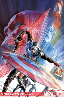Pues bien, parece ser que se hará lo propio con la serie regular del Capitán América, cuyo número 51 pasará a ser el número 600. A la portada de dicho número, obra de Steve Epting, se le añadirá una portada alternativa para la ocasión, obra del genial Alex Ross.