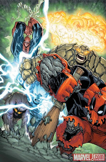 ¿De qué trata? Bueno, la imagen vale más que mil palabras. Ahí vemos a algunos héroes como Spiderman, la Cosa, la Antorcha Humana o Masacre, pero en plan «hulkonizados».