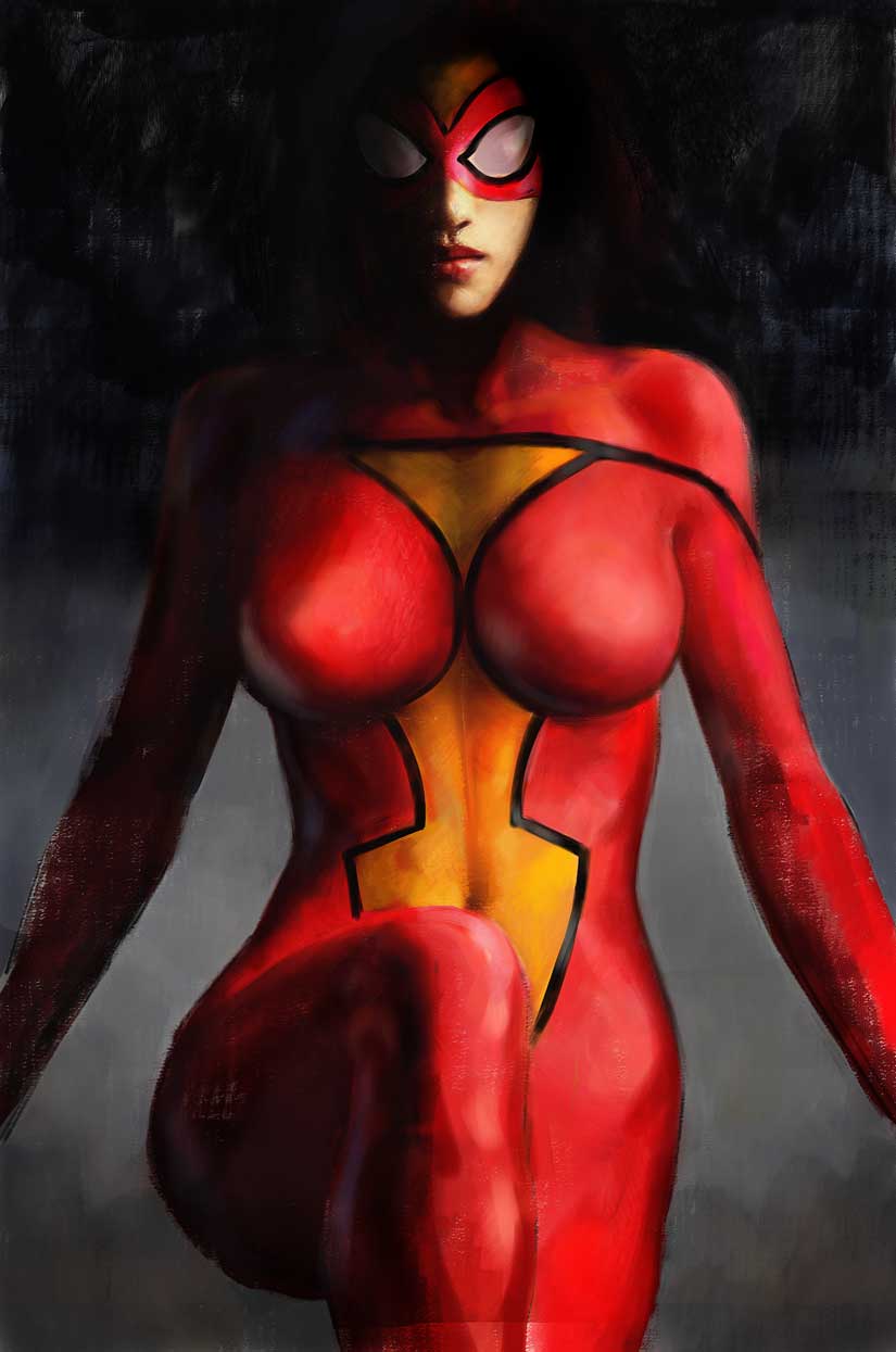 Spiderwoman es Jessica Miriam Drew, hija de Jonathan y Merriam Drew, nacida en Londres, Inglaterra. Cuando era joven, Jessica fue letalmente envenenada con radiación mientras vivía cerca del Monte Wundagore en Transia. En un intento por salvar su vida, su padre le inyectó un suero experimental basado en sangre de araña irrdadiada. Debido a que el suero no tuvo effectos aparentes en ella, el hombre conocido como el Alto Evolucionador (Herbert Wyndham) la metió en un acelerador genético. Una vez en el acelerador, su envejecimiento se deceleró. Cuando al fin salió, décadas después, Drew sólo tenía 17 años.