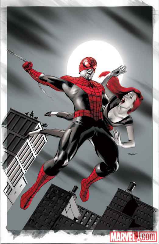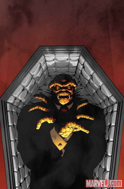 Pero como suele ocurrir en estos casos, Marvel no va a dejar pasar la oportunidad de aprovechar esta corriente y no se ha cortado lo más mínimo a la hora de extender la moda chupasangre al resto del Universo Marvel, aunque sólo sea mediante portadas alternativas. Dicho esto, aquí os dejo un par de ellas con Spiderman y La Cosa como protagonistas. La primera pertenece al número 644 de Amazing Spiderman, obra de Mike Mayhew, mientras que la segunda acompaña al número 584 de Fantastic Four, y es obra de David Yardin.