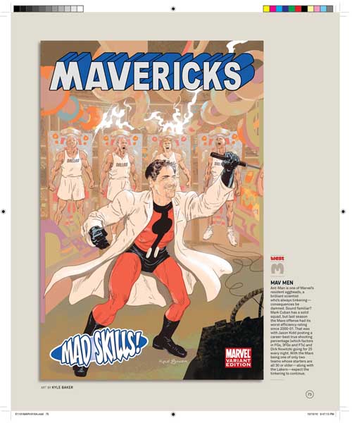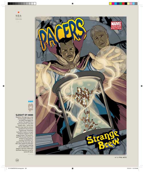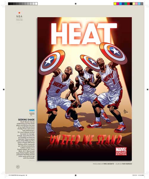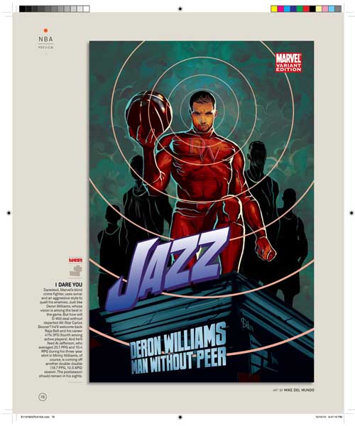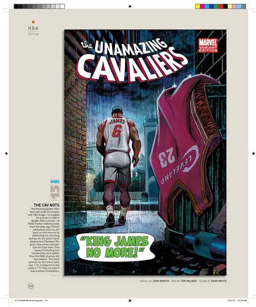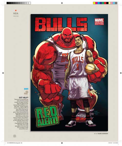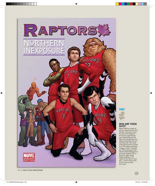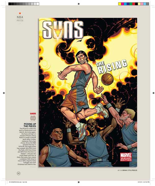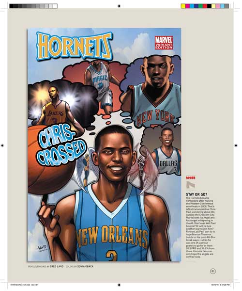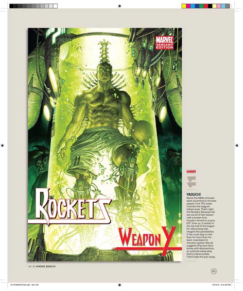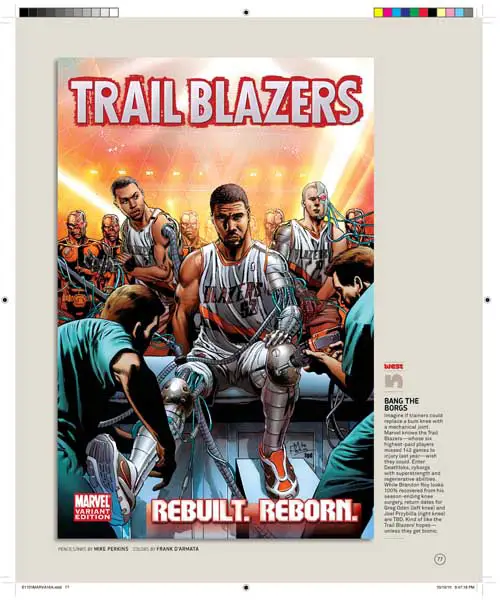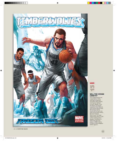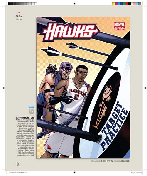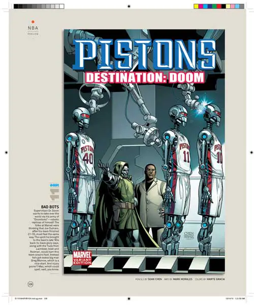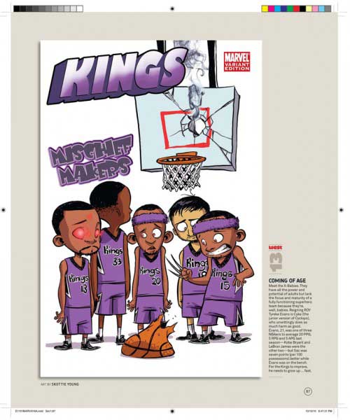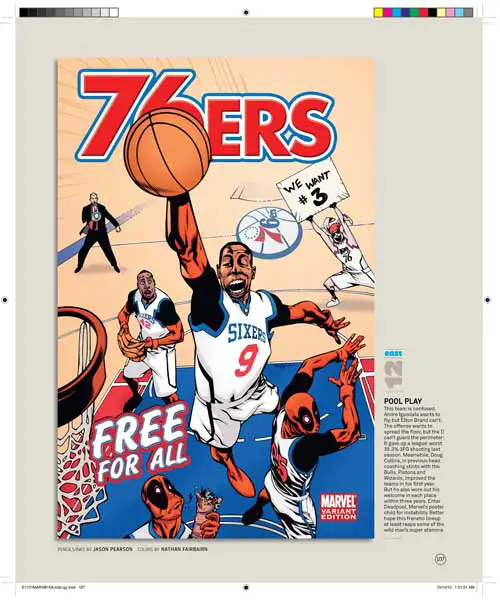 Son 30 portadas, una por cada equipo de la NBA, y son obra de varios de los mejores dibujantes de Marvel, uséase, Olivier Coipel, Lenil Yu, J. Scott Campbell, Terry Dodson, Salvador Larocca, Simone Bianchi, Dave Johnson, John Romita Sr., Skottie Young, Gabrielle Del’Otto y Mike Deodato.