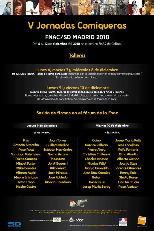 V Jornadas Comiqueras FNAC/SD Madrid Por Universo Álex - 26 noviembre, 2010 FacebookTwitterPinterestWhatsAppReddItEmailTelegram Esta quinta edición tendrá lugar entre el 6 y el 12 de diciembre en la FNAC de Callao, en Madrid. Aquí tenéis el programa.