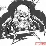 Mark Paniccia (editor de Hulk) y Jeff Parker me pidieron que lo hiciera. Jeff tenía algunas cosas específicas que quería integrar, principalmente las piernas y la cabeza calva. Mi proceso de diseño consistió en recorrer todas las iteraciones previas del aspecto de M.O.D.O.K. para conseguir captar la esencia que otros dibujantes habían aportado con los años. Pero me centré principalmente en sus primeras apariciones. Siempre que diseño algo para Marvel quiero que pueda encajar en el mundo diseñado por Jack Kirby, incluso aunque tenga elementos de diseño industrial más contemporáneo.