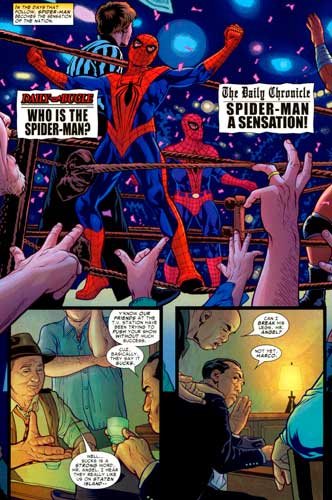 Allá por 2008, Marvel publicó una miniserie de cinco númeroes llamada Spider-Man: With Great Power, escrita por David Lapham y dibujada por Tony Harris. En ella se contaba la historia de lo que ocurrió entre el accidente que le dio a Peter Parker sus poderes, hasta el asesinato de su Tío Ben. La serie fue publicada bajo el sello Marvel Knights para poder evitar así cualquier enlace con la continuidad actual. Ahora, gracias a unos cuantos fans avispados, hemos podido ver unas cuantas páginas escaneadas del segundo número de esta miniserie, en el que se ve a Spiderman con un traje prácticamente idéntico al de las imágenes de la película, a excepción de los ojos y el logo en el pecho.
