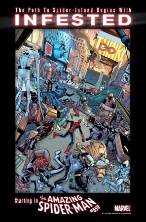 Marvel ha anunciado Infested, el nuevo arco argumental de la serie Amazing Spider-Man, que comenzará en el número 659, y que servirá de introducción al evento arácnido del año, Spider Island (La Isla Araña), que empezará en el número 666. Y para no desentonar, este número contará con los dibujantes Stefano Caselli, Barry Kitson, Lee Garbett y Emma Ríos, que se unirán al guionista Dan Slott en esta espectacular aventura de la que los fans hablarán durante años (o eso dice Marvel, y esperemos que sea para bien).