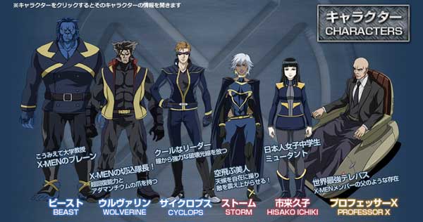 En la web del canal japonés Animax se puede encontrar ya la sección dedicada al anime de X-Men, del que ya os mostré el tráiler, y que comenzarán a emitir el próximo 1 de abril. En dicha web se puede ver una imagen de los personajes principales de la serie (que es la que os dejo a continuación), bastante fieles a los cómics aunque con ese obvio toque manga. Pero entre esos personajes destaca uno, Hisako Ichiki, alias Armadura. Vale, sí, que ahora está de actualidad, pero parece que no han podido resistirse a introducir a un personaje japonés para ganarse al público nipón.