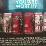 Un usuario ha publicado en internet las primeras imágenes de la promoción del refresco Dr. Pepper (perteneciente a la compañía Pepsi) con respecto a la película de Thor. Como podéis ver en las imágenes, las latas contarán con la imagen de alguno de los personajes de la película, entre los que se encuentran Thor, Loki, Sif, los Tres Guerreros, Heimdall y el Destructor. También se distribuirá un séptimo modelo correspondiente a Mjlonir, que incluirá las palabras «Eres Digno», y que otorgará al propietario un premio.