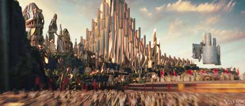 Los escenarios y los trajes se ven increíbles en la gran pantalla. Eso es gracias al brillante trabajo del equipo, particularmente de nuestro diseñador de producción Bo Welch y nuestro diseñadora de trajes Alexandra Byrne. Sé que han sacado ideas de los cómics y de la antigua mitología nórdica para inspirarse. Y también de pequeños detalles aportados por los fans, y espero que ellos los noten durante la película.