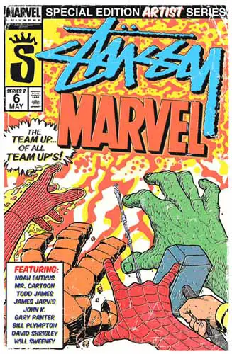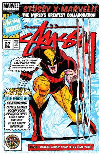 Stussy lanzará el próximo 27 de abril dos nuevas líneas adornadas con personajes de Marvel. Entre ellos podremos encontrar al Capitán América, Dr. Muerte, Dr. Octopus, Motorista Fantasma, Punisher, Estela Plateada y Lobezno, además de algo a lo que llaman la camiseta Marvel World Tour. Además, para una de las líneas contarán con una serie de artistas como Noah Butkus, Mr. Cartoon, Todd James, James Jarvis, John Kricfalusi, Gary Panter, Bill Plympton, David Shrigley y Will Sweeney. Aquí os dejo un par de ejemplos: