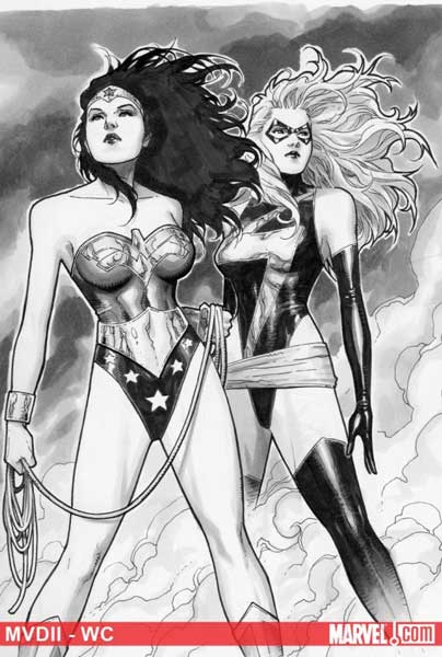 Hoy ha salido a la luz una portada de Jim Cheung para Marvel protagonizada por Wonder Woman y Ms. Marvel, que además pone que se refiere a MVD-WC. No son pocos los que dicen que eso significa Marvel Vs. DC 2 en la WonderCon. El 1 de abril comienza dicho evento, supongo que será entonces cuando salgamos de dudas.