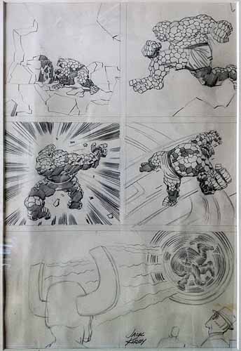 A través del blog de Ferran Delgado, he descubierto una página inédita de Los Cuatro Fantásticos dibujada en su día por Jack Kirby. La página original pertenece ahora mismo al señor John Coyne, y hace poco que la mostró en el Jack Kirby Discussion Group.