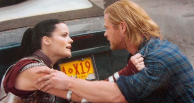 Pues en efecto, a una semana del estreno de la película, tenemos una nueva imagen en la que vemos a Jaimie Alexander en el papel de Lady Sif junto a un Chris Hemsworth «de paisano», lo que nos da a entender que la escena durante la que transcurre esta instantánea es en la Tierra, o Midgard, como queráis llamarlo.