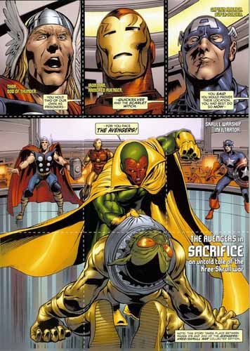 Lo que os traigo hoy es otra página de esa colección, perteneciente a la historia Sacrificio, protagonizada por Thor, Iron Man, Capitán América y Visión.