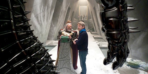 Ayer os mostré una serie de imágenes bastante interesantes de Thor, reveladas de forma oficial por Marvel y Paramount. Si recordáis, en ellas se podía ver a prácticamente todos los personajes de la película, excepto a Odín, el Destructor y los Gigantes de Hielo. Pues bien, resulta que se coló una de las fotos en la que, precisamente, aparece Anthony Hopkins (Odín) con Kenneth Branagh (director) y el Destructor. Aquí os la dejo.