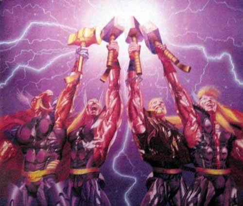 Thunderstrike: Es un arquitecto llamado Eric Masterson que sustituye temporalmente a Thor después de que el Dios del Trueno fuera castigado por matar a Loki. Masterson carga con el manto de Thor durante varios años, continuando los distintos papeles de Thor como miembro de Los Vengadores y protector de Midgard. Más adelante, Thor es liberado, y en gratitud por sus servicios, Odín otorga a Masterson una maza encantada, que usa bajo el alias de Thunderstrike. Masterson también sirvió en las Thor Corps con Bill Rayos Beta y una futura encarnación de Thor llamada Dargo Ktor. Más adelante, Thunderstrike sucumbe a la maldición del Hacha de Sangre, que solía usar para derrotar a Seth, pero finalmente muere siendo incapaz de desahacerse de la maldición. Actualmente se está publicando una miniserie de 5 números del personaje.