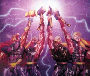 Y con este artículo vengo a cerrar la trilogía de la historia de Thor. Empecé con un repaso a toda la mitología nórdica y germana del auténtico Dios del Trueno, para seguir con todo un repaso a la historia del personaje de Marvel Cómics. En esta tercera parte, que ya sé que llega fuera de la Semana de Thor de Espacio Marvelita (aunque haré trampa y diré que se vale porque aún no se ha estrenado la película en Estados Unidos), toca repasar qué versiones alternativas nos podemos encontrar de Thor en el Universo Marvel, sí como un breve resumen de aquellos personajes que han asumido en algún momento el papel de Thor. Por último, os presento algunas muestras de lo que ha dado de sí el personaje en otros medios.