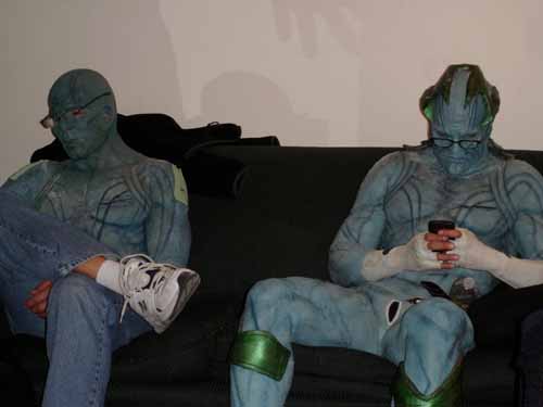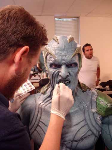 El actor y especialista Joseph Gatt, que interpreta en Thor al Gigante de hielo Grundroth, ha publicado a través de su cuenta de Facebook varias imágenes de sus sesiones de maquillaje para la película. Aún faltarían los efectos especiales, pero vemos ya a los gigantes de hielo con sus prostéticos y maquillajes. Graciosa es la imagen en la que están sentados con gafas mirando el móvil.