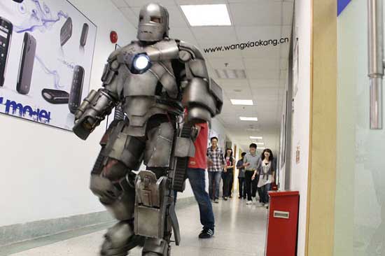 Wang XiaoKang, que así se llama este trabajador de la empresa ZTE de Shangai, es tan fan del Hombre de Hierro de Marvel que decidió construirse una réplica de la primera armadura de Iron Man, o Mark I, que le costó unos 300 € y tres meses de trabajo. Dicho traje cuenta con su propio reactor pectoral iluminado con LEDs y unos ventiladores alimentados por baterías para generar corriente de aire interior. El peso total del traje es de alrededor de 50 kg.