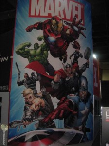 Aunque esta vez no se trata de la versión cinematográfica, sino de la versión comiquera. Tal y como lo veis en la imagen es como Marvel intenta vender los derechos para el marketing de los Héroes Más Poderosos de la Tierra. Nótese la aproximación con respecto a la película vengadora, tanto en la formación (Capitán América, Thor, Iron Man, Viuda Negra, Hulk, Ojo de Halcón y Nick Furia), como en el aspecto de cada uno de los personajes. De hecho, entrando un poco más en detalle en esto último, vemos como algunos personajes son como los clásicos (Hulk, Viuda Negra, Thor), otros como las versiones del Universo Ultimate (Ojo de Halcón, Nick Furia) y otros una mezcla de lo anterior y lo que vimos / veremos en las películas (Iron Man, Capitán América). En fin, que todo sea por vender.