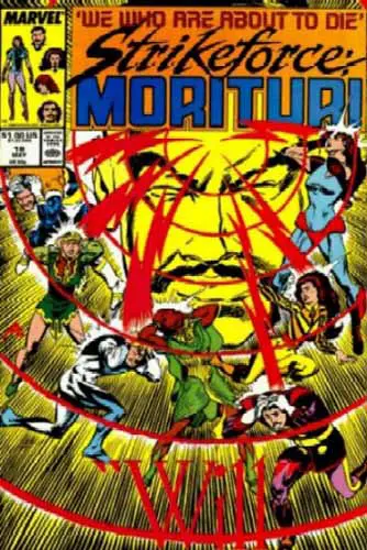 Strikeforce: Morituri se publicó entre 1986 y 1989, y estaba ambientada en una Tierra a punto de ser conquistada por unos invasores alienígenas en busca de recursos (La Horda). Mediante un proceso científico se diseña una forma de dar superpoderes a un escuadrón de humanos para que luchen contra los aliens, aunque este proceso también les condena a morir un año después. La serie contaba las aventuras de esa fuerza de ataque que sabía que no tenía nada que perder.