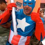 Como ya os comentamos hace unos días, ayer se proyectó en la Comic Con de San Diego la película Capitán América: El Primer Vengador, sesión a la que podía acceder todo aquel visitante del evento que se hiciese con una entrada y que fue presentada por el propio Chris Evans, acompañado de una señoritas caracterizadas de USO. Además, estaba la opción de conseguir una entrada gratis y algunos extras si eras uno de los primeros usuarios en asistir disfrazado de Capitán América, y parece que hubo participación. A continuación os dejamos algunas imágenes.
