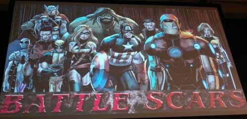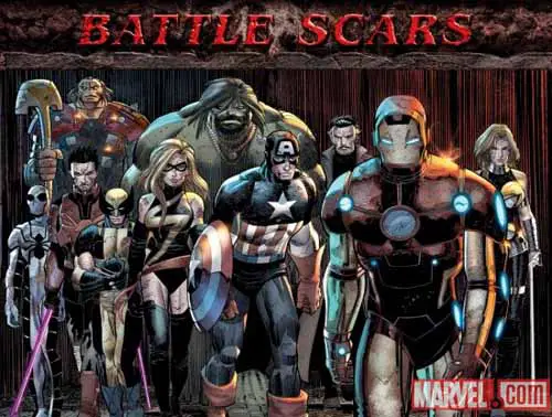 ¿Recordáis Battle Scars? Sí, ese evento que se presentó en la Comic Con de San Diego que será la continuación directa de Fear Itself. Pues bien, a continuación os dejo la imagen promocional que se presentó durante el panel de Fear Itself de la feria, cuando se presentó el evento, y a continuación otra publicada ayer en Marvel.com. ¿Veis la diferencia? ¿Por qué el cambio?