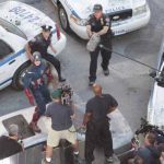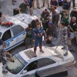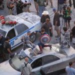 Hoy nos llegan más vídeos y fotos de la sesión de rodaje de ayer de Los Vengadores. Las escenas que os muestro a continuación están protagonizadas por Chris Evans como Capitán América, aunque también aparece la policía y el ejército en lo que parece ser una gran batalla en las calles de Nueva York. El escenario es el que ya vimos estos últimos días, un campo de batalla urbano lleno de destrucción. Pero ahora viene lo bueno, y ojo porque se puede considerar como spoiler.