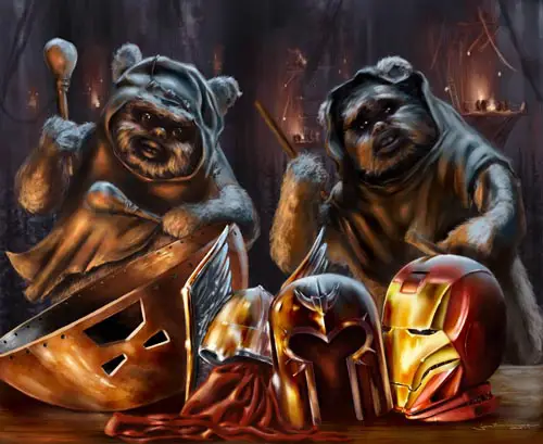 Dibujos de personajes de Star Wars contra personajes de Marvel Por Universo Álex - 21 agosto, 2011 FacebookTwitterPinterestWhatsAppReddItEmailTelegram Jonathan Moore, fan declarado de Marvel y de Star Wars, se ha aventurado a realizar unas ilustraciones en las que enfrenta a personajes de ambos universos, obteniendo como resultado las siguientes imágenes. Fuente: La Historieta.