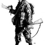 Cuando me preguntan que en qué estoy trabajando, generalmente no tengo una respuesta decente, hasta ahora. Esto son simplemente bocetos porque no he leído demasiado, pero puedo decir que está protagonizado por el Capi y por Lobezno, y que parte de ello tiene lugar a principios de los años 40.