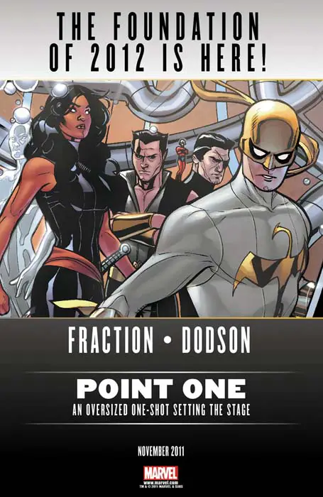 Tras el regreso de Nova y la guerra de Ultron, turno para los Defensores en el especial Point One del próximo noviembre, ahora de la mano de Matt Fraction y Terry Dodson. Como novedad, vemos que parece que se unen al equipo el Hombre Hormiga y Nick Furia.