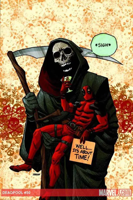 En Deadpool Nº 50 de febrero de 2012, el Mercenario Bocazas encuentra finalmente una forma de morir, y con la ayuda del guionista Daniel Way y el dibujante Carlo Barberi está listo para ponerla en marcha.