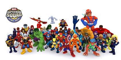 Tanto en la fase de Beta Abierta, como en el lanzamiento final en el Q4 de 2011, cuatro superhéroes: La Cosa, Cíclope, Falcon y Ms. Marvel, estarán disponibles como personajes jugables cuando el juego arranque. Algunos héroes, como Silver Surfer, se pueden añadir a tu equipo usando la moneda del juego. Alrededor 50 personajes de Marvel están disponibles desde el comienzo. Durante 26 variadas misiones de combate y 13 complejos duelos de cartas coleccionables, los jugadores pueden ya experimentar el gigantesco mundo de Marvel Super Hero Squad Online durante la fase de Beta Abierta.