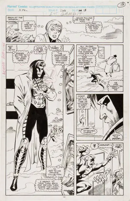 Sea lo que sea, se considera que es la primera aparición de Gambito en un cómic de Marvel, y por ello la siguiente página original de Mike Collins se ha vendido en una subasta por 7.767,50 dólares. Las cosas se están desmadrando un poco…