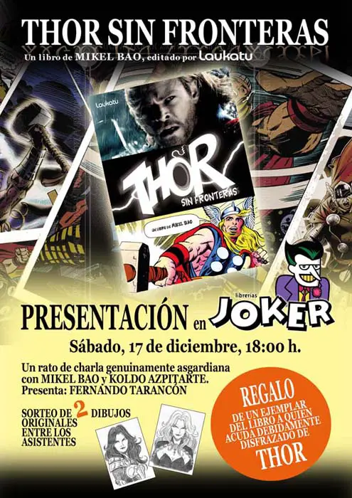 El sábado 17 de diciembre a las 18:00 h se presentará el libro Thor Sin Fronteras en Bilbao en la librería Joker (Alda. Urkijo 27). Estarán presentes en el acto Mikel Bao (autor del libro), Koldo Azpitarte (editor) y Fernando Tarancón.