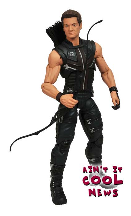 AICN nos ha mostrado un primer vistazo exclusivo a la figura de 18 centímetros basada en el Ojo de Halcón de la película Los Vengadores y que pertenece a la línea Marvel Select. La figura cuenta con 16 puntos de articulación, viene con el arco y las flechas marca de la casa y una base que se conecta con la de Hulk y la de un misterioso villano. ¿Quizás esto describe una escena de la película?