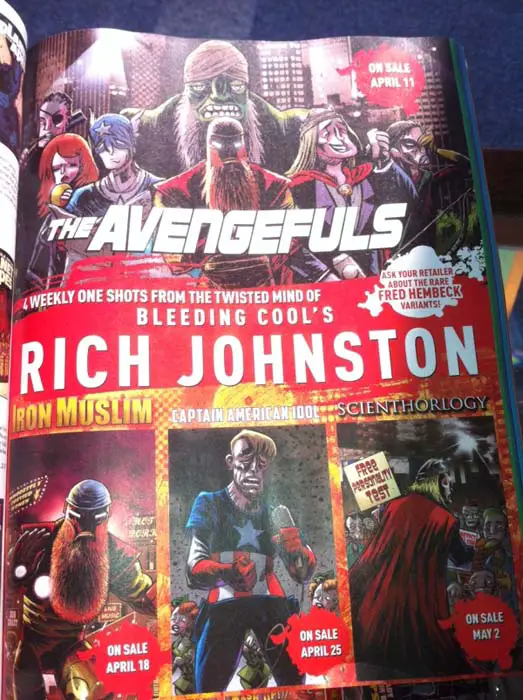 The Avengefuls está dibujado por Joshua Covey, Iron Muslim está dibujado por Bryan Turner, Captain American Idol está dibujado por Chris Haley y Scienthorlogy está dibujado por el Mesías de los cómics en persona, Michael Netzer. Las portadas son obra de Mark Stafford, y las portadas alternativas son obra de Fred Hembeck.