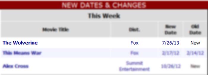 Según una actualización de producción de Box Office Mojo, Twentieth Century Fox ha otorgado la tan deseada fecha de estreno a la nueva película de Lobezno, que será el 26 de julio de 2013.