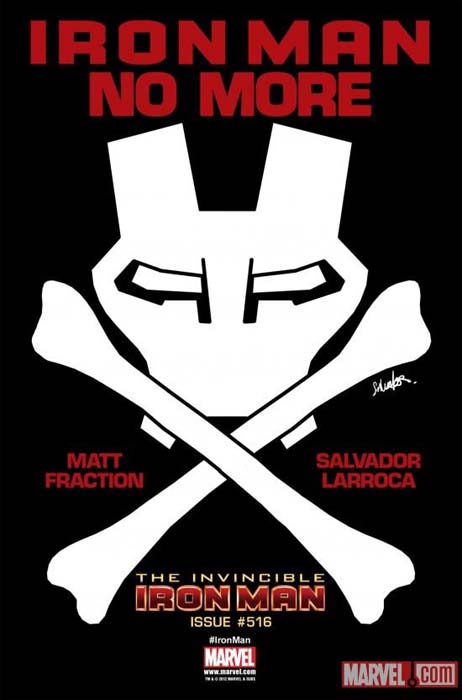 Marvel ha publicado un teaser relacionado con Iron Man, y que si titula Iron Man No More (Iron Man Nunca Más), haciendo referencia a un nuevo arco argumental de Matt Fraction y Salvador Larroca que comenzará en el número 516 de Invincible Iron Man.