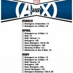 Marvel ha revelado ya el checklist (obviamente, para Estados Unidos) del que será el gran evento de 2012 en el mundo de los cómics, es esperado Avengers Vs. X-Men. Por un lado tenemos el seguimiento de la publicación de los números de la serie principal, y por otro la lista de publicación de todos los cruces que otras series harán con el evento. Como podéis ver, todo comienza en este mes de marzo y se extenderá hasta el próximo mes de septiembre.