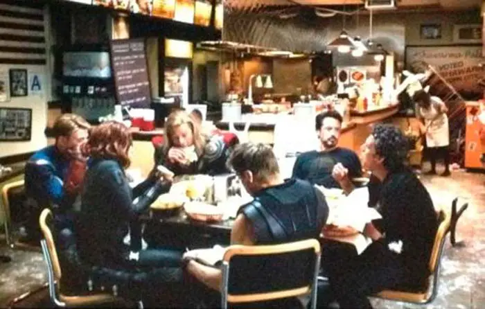 El equipo entero está sentado después de la batalla final comiendo shawarma. Apenas dura un minuto y no tiene ni un solo diálogo, aunque Mark Ruffalo (Bruce Banner / Hulk) lucha por mantener una cara seria durante toda la escena.
