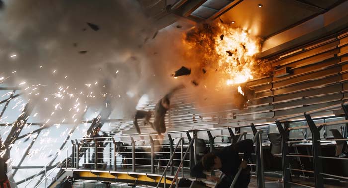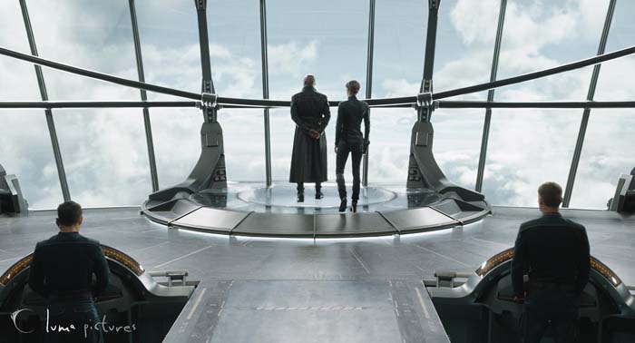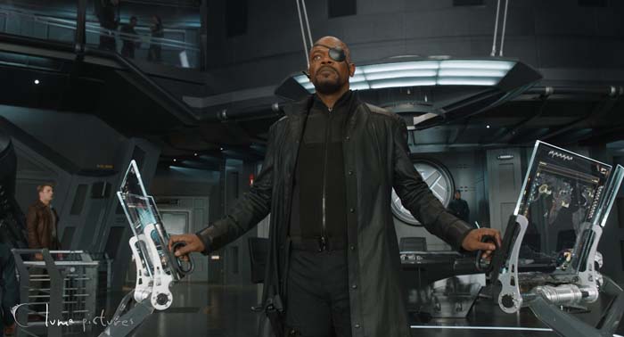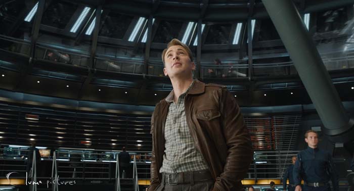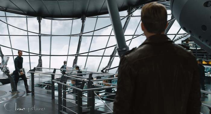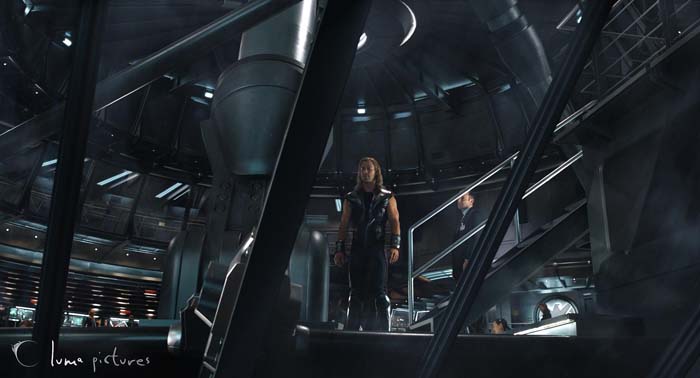 Para nosotros, la escena más artística fue la imagen amplia de Thor y Coulson en el puente de mando del Helitransporte por la noche. Esa imagen mostraba cada pequeño detalle del puente de mando y requirió mucha iluminación rigurosa y un desarrollo especial para capturar un aspecto realista. El decorado era pesado y contenía muchos materiales metálicos con molestos reflejos, que son notoriamente difíciles de renderizar limpios.