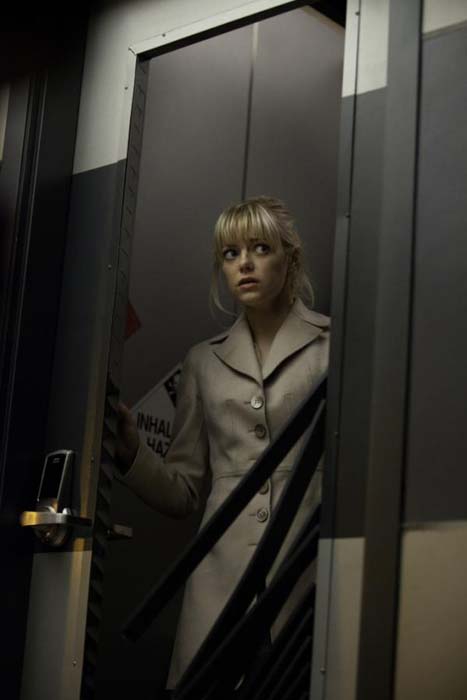 Se acaba de publicar una nueva imagen oficial de la película The Amazing Spider-Man en la que vemos a una agobiada y angustiada Gwen Stacy (Emma Stone) que parece estar expectante por algo que acecha, algo que posiblemente sea el Lagarto.