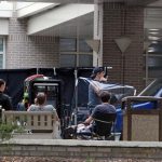Actualización: Según la gente de la escena, Gwyneth Paltrow parece estar dentro, mientras que un doble de Robert Downey Jr. está fuera del edificio disparando. Aparentemente, hay muchos tipos en trajes, que sugieren que son del servicio secreto, como se comentó en informes anteriores.