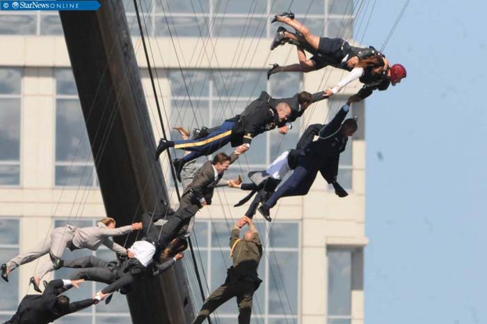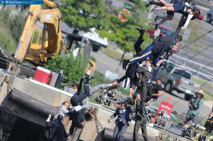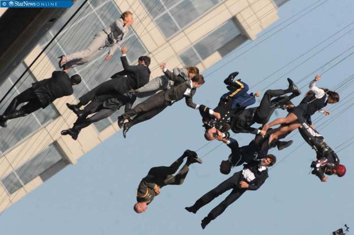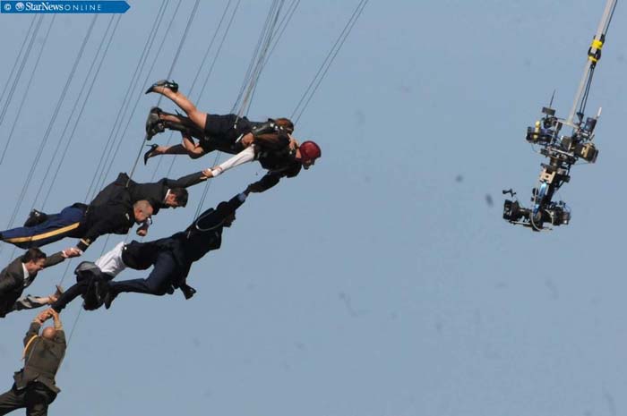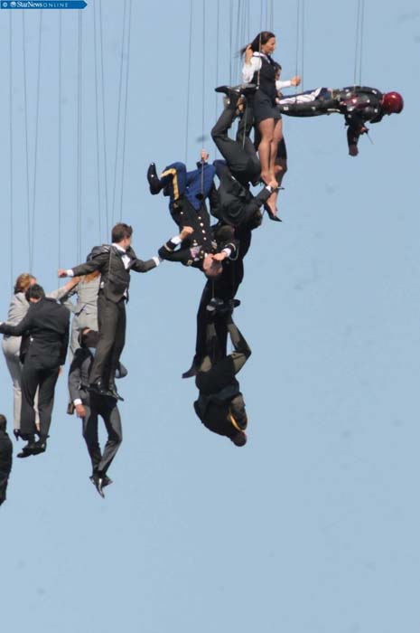 Según estas nuevas imágenes y este nuevo vídeo, además del comentario del usuario CineNews, parece que la extraña secuencia del rodaje de Iron Man 3 en la que vemos a mucha gente colgada de cables, se corresponde con una escena en la que Iron Man, Máquina de Guerra u otro personaje con armadura salva a varios pasajeros de un avión. De hecho, corren rumores de que podría ser incluso Gwyneth Paltrow, cuyo personaje Pepper Potts al fin se pondría una armadura.