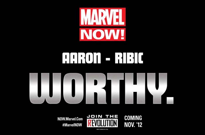 Si ayer se nos insinuó que Kieron Gillen y Greg Land se harán cargo de la nueva serie de Iron Man a partir de noviembre, hoy toca turno de la pareja formada por Jason Aaron y Esad Ribic, que se encargarán de Thor a partir del mismo mes. Al menos esto es lo que insinúa el siguiente teaser, donde se puede ver los nombres de ambos junto a la palabra Worthy (Digno).