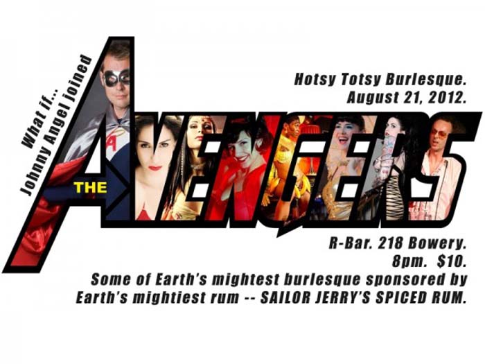 Esta semana, Hotsy Totsy Burlesque celebra su propio espectáculo de Vengadores XXX en el R-Bar de Nueva York. Hotsy Totsy es conocida por sus extrañas noches temáticas dirigidas a fans, con ejemplos recientes que incluyen Juego de Tronos, Doctor Who y Mad Men. A continuación tenéis la publicación oficial del espectáculo.