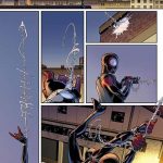 Toda esta idea surgió de Mark Bagley hace años. Una vez que pasamos nuestra primera historia en Ultimate Spider-Man, dijo, ‘He hecho Amazing Spider-Man durante años antes de estar en esta serie y este personaje es una persona diferente. Es más delgado y más joven. Tiene un nivel de energía diferente. Así que tendrá un aspecto diferente cuando haga cosas como balancearse o trepar muros. Además, por mi propia salud, no voy a dibujar lo mismo una y otra vez, usaré diferentes ángulos de cámara a los que se suelen ver en Amazing Spider-Man. Así que si echas un vistazo a esos primeros 40 números de Ultimate Spider-Man, en realidad verás siempre a Bagley buscando formas nuevas de dibujar a Spiderman, y eso es genial. Vamos a usar esa filosofía con Miles. Es una persona diferente con un físico diferente.