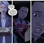 Vamos a lanzar una nueva historia de Veneno para Miles, y el número 16.1 es nuestro gran preludio a esa historia. Así que siguiendo la tradición de los Point One, este es ciertamente un punto excelente. Establece todo sobre Miles y los grandes misterios sobre qué está pasando con Veneno y cosas como esa. Si has estado siguiendo Ultimate Spider-Man todo este tiempo y sabes toda la historia de Veneno, este es un buen momento para un nuevo capítulo. Y si no sabes nada eres como Miles, así que estás en buenas manos. Ahora que Miles ha establecido lo que será su status quo, podemos empezar a meter nuevos elementos, algunos villanos nuevos y otros villanos clásicos de Spiderman que él tiene que descubrir. Pensamos que Veneno era un lugar perfecto para empezar. Así que mientras Miles y Ganke intentan descubrir cómo conseguir fluido arácnido, va a haber muchas cosas con las que Miles tendrá que tratar. Y tendrémos el primer interés amoroso de Miles muy pronto. Sara me hizo esperar hasta que volviese a la serie para hacerla debutar.