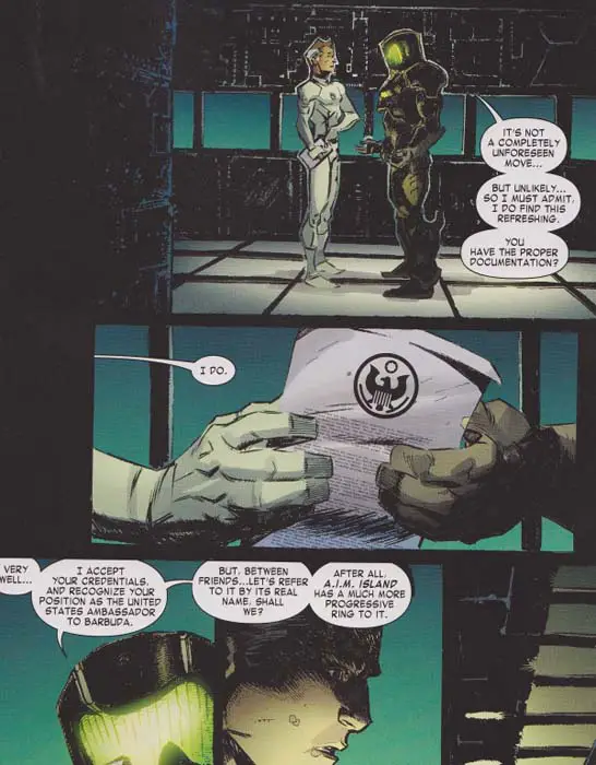 En el nuevo número de Fantastic Four, publicado hoy mismo, mientras el Capitán América y los Vengadores están llamando al Presidente para aprobar una serie de acciones referentes a la recientemente adquirida isla de Barbuda por parte de I.M.A., Mr. Fantástico tiene una solución que encaja más con el estilo de Kofi Anan.